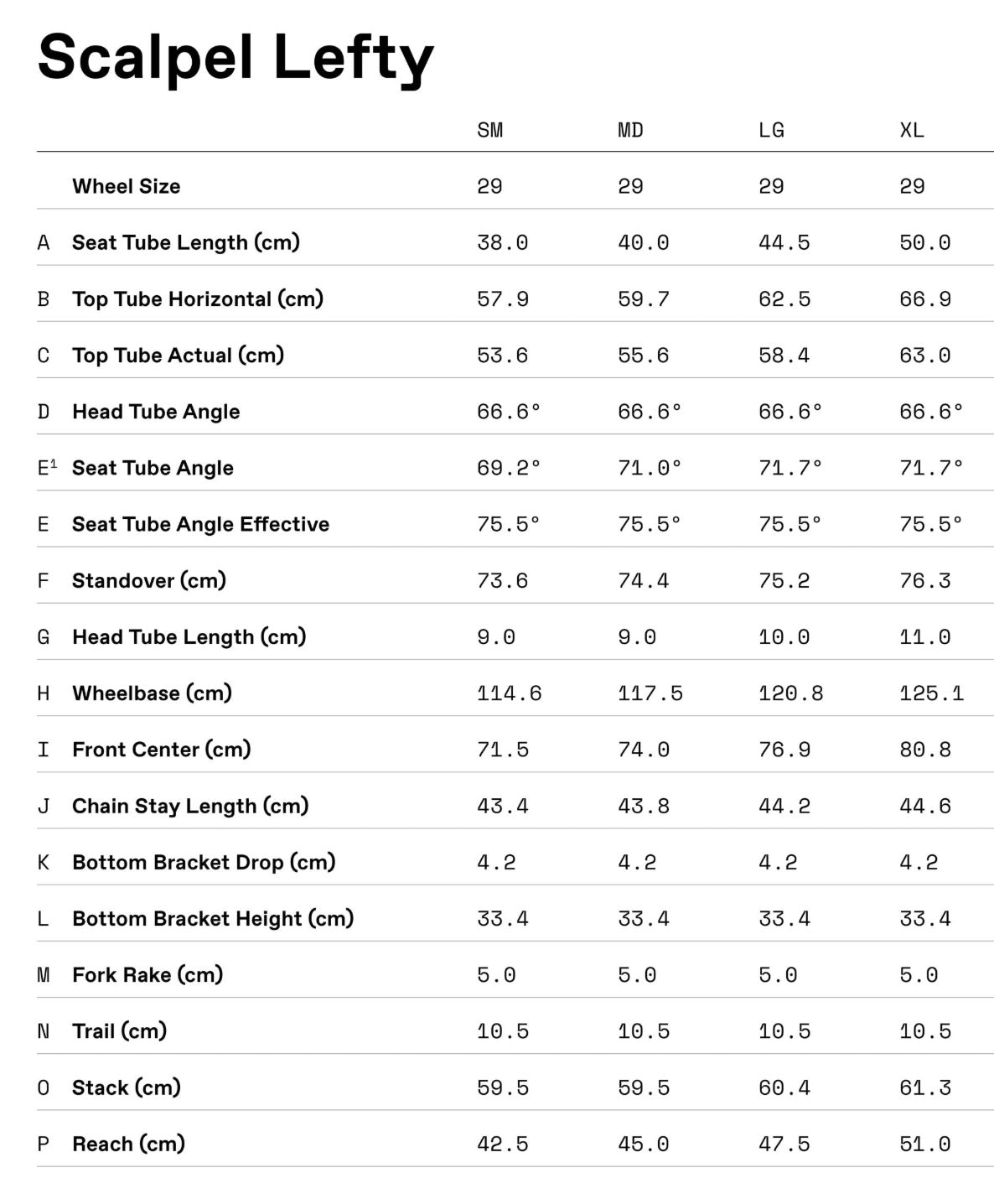 FrameScalpel, lightweight carbon construction, 120mm travel, Proportional Response Suspension and Geometry, FlexPivot Chainstay, full internal cable routing, 73mm BSA, 1.5" headtube with 1-1/8" upper reducer/internal cable guide, 148x12mm thru axle, 55mm chainline, UDH, post-mount disc – 160mm native