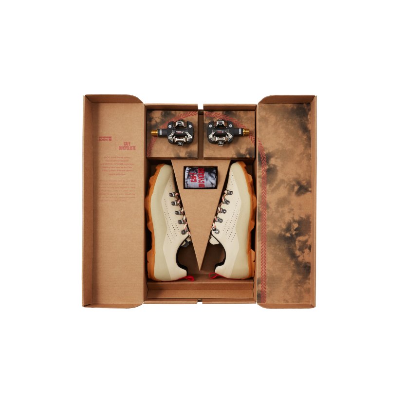 The adventurous spirit of French gravel riding is brought to you by LOOK Cycle and Café du Cycliste with this limited edition pack. Each pack contains a pair of Café du Cycliste gravel shoes, a pair of LOOK X-TRACK RACE CARBON Ti pedal, plus a pair of performance socks combining breathability and comfort in white and grey Tie-Dye.