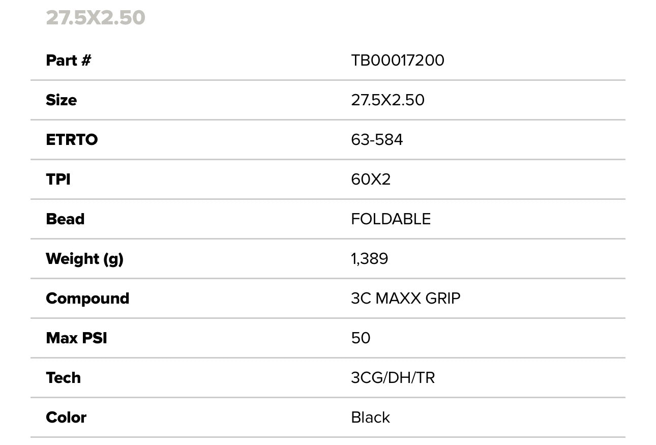 - Tubeless Ready specs are denoted with a “TR” in the tables below