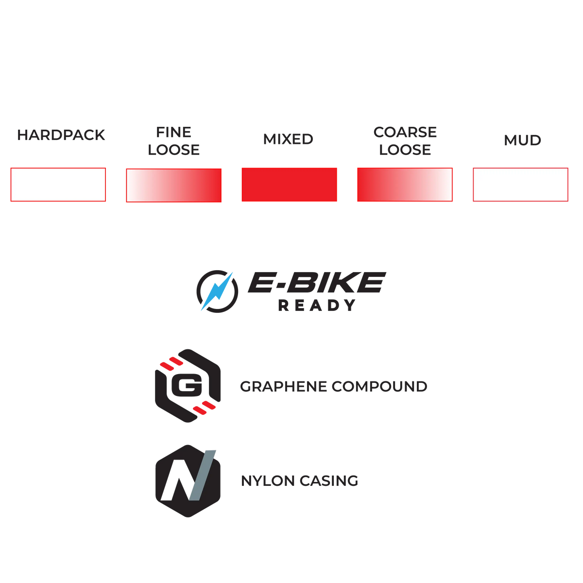 The T50 is crafted with our innovative Endurance Formulation powered by Graphene, making the Terreno T50 Mixed capable of withstanding the rigors of long-distance gravel riding in any weather condition. An anti-puncture belt is added to provide extra puncture resistance, while a sidewall stability insert provides additional bead protection for enhanced durability and longevity.